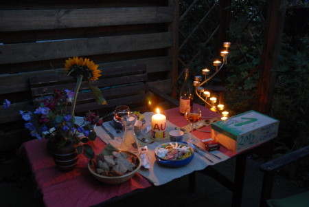 am 2. Juli 2012 haben wir unseren ersten Hochzeitstag der legendären Sandkastenhochzeit gefeiert. Dabei durften wir unsere erste Holzkiste von Magali und Cédric zur Baumwollenen Hochzeit öffnen (Noces de Coton) - sie enthielt feine Köstlichkeiten aus der Provence... ! Wir haben uns die Bilder noch einmal angesehen, die Glückwunschkarten, haben unsere Schatzkiste wieder geöffnet und all Eure guten Wünsche gelesen. auch den schönen Feuertext von Judy Brown, den Maike und Kessi zum Feuerbohren verlesen haben und wir haben unser Trauversprechen erneuert.